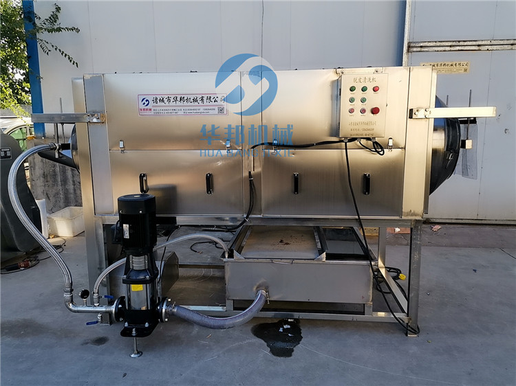 2、設(shè)備采用大功率離心泵,大功率揚(yáng)程噴淋系統(tǒng)保證更好的脫皮效果。