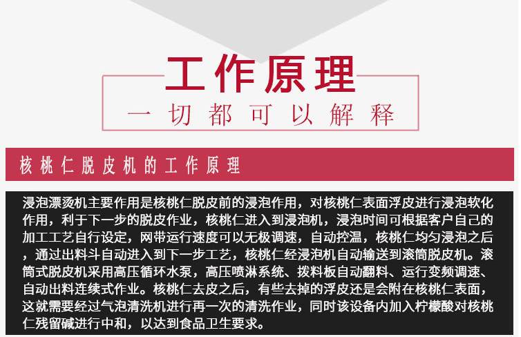 2.還有做清水核桃,還有琥珀核桃等風(fēng)味核桃的,他們要求核桃的完整度要高,果仁脫皮且果仁完整。核桃仁去皮設(shè)備去皮率高達(dá)百分之98以上,完整度也在98以上。