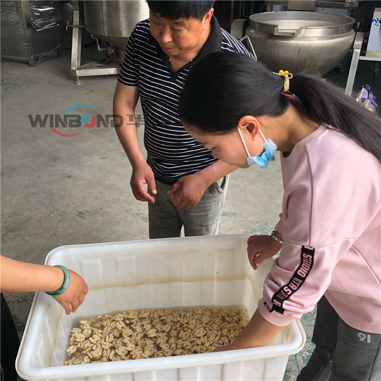 選擇核桃仁去皮機(jī),采用水脫皮,水至柔,不會(huì)破壞核桃仁本身結(jié)構(gòu),保持他原有的結(jié)構(gòu)組織,采用清水去皮,不添加化學(xué)成分,保證核桃仁本身的口感和營養(yǎng)成分。清水去皮與藥水去皮的比較的優(yōu)勢就是,不會(huì)對(duì)核桃仁留有有害物質(zhì),而且,脫完皮后的水可以直接排放。