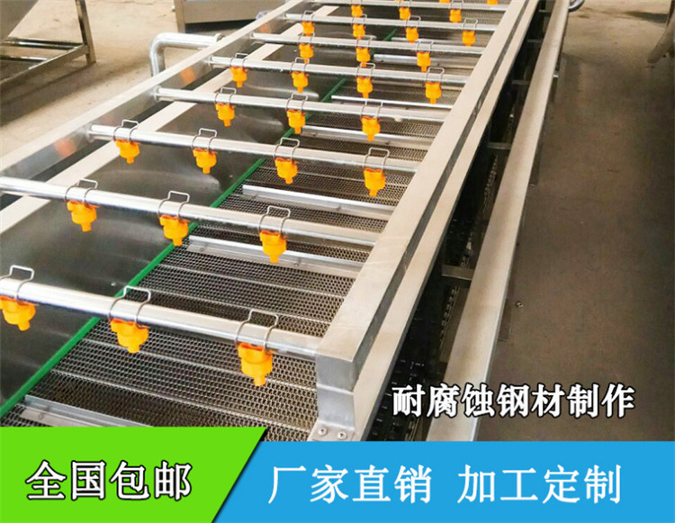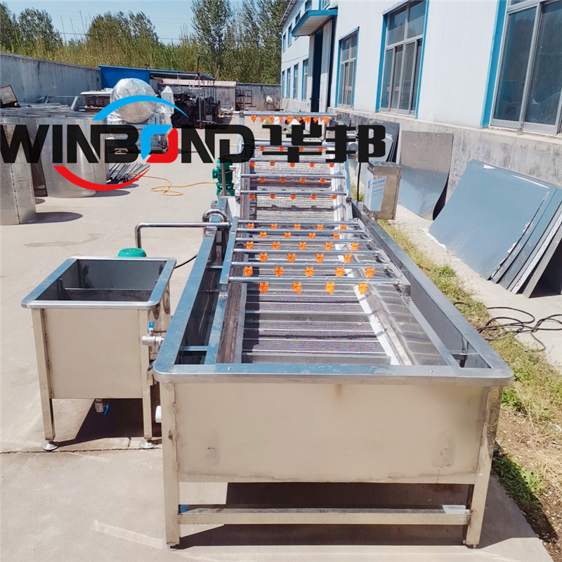氣泡清洗機的原理主要是利用箱體前部分設備箱體中注適量的水,原料在經過箱體時,會與氣泡機和水的結合作用下做翻滾狀態(tài),并隨網帶不斷向前推進,在出水面時,設有噴淋頭,高壓沖洗(即二次清洗)