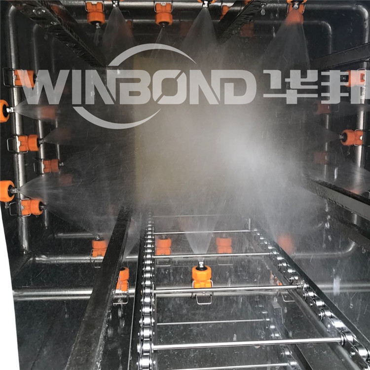 2.設(shè)備有熱堿水噴淋段、熱水噴淋段、清水噴淋段幾部分組成,其中消毒水噴淋段及風干段可根據(jù)客戶要求定配。