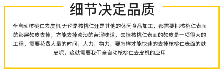 核桃深加工時(shí),需要去掉核桃仁外層的薄皮以脫除苦澀味道。以前工藝較為落后,目前諸城華邦機(jī)械的本項(xiàng)創(chuàng)新解決的技術(shù)問(wèn)題是給廣大核桃產(chǎn)業(yè)提供一種大幅度提高生產(chǎn)效率、節(jié)約用人、純物理脫皮均勻干凈,自動(dòng)化程度高,不破壞核桃仁內(nèi)在品質(zhì)營(yíng)養(yǎng)成分,不爛、不碎、不損害外形,果仁完整。